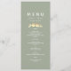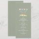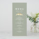 Elegante menú de boda en verde salvia con ilustración romántica de tórtolas en falso oro y tipografía minimalista blanca. Perfecto para recepciones de primavera, verano u otoño, esta tarjeta de menú complementa un tema de boda atemporal e inspirado en la naturaleza. Totalmente editable con sus aperitivos, plato principal y postre. Coincide con el conjunto completo de bodas de tórtolas doradas.
