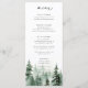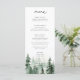 Elegante escenario de pinos acuáticos y menú boda. Características, moderna tipografía negra con respaldo de color verde oscuro.