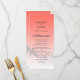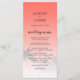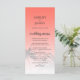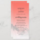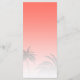 Elegante menú de bodas de destino con un diseño de palmeras tropicales sobre un brillante fondo coralino con un guión elegante y una tipografía moderna. El coral que se pone a la sombra desciende sobre un fondo blanco. Simplemente añada tus detalles bodas a este elegante menú de bodas de playa tropical. Diseñado exclusivamente para usted por Happy Dolphin studio.