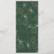 Patrón de dibujo de hojas de palma blancas sobre fondo verde. Texto blanco y árbol de palma dibujando sobre fondo de arco rosa delineado en amarillo dorado.