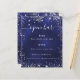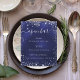 De fondo azul marino, el color azul es desigual. Decorado con purpurinas de plata falsa, chispas. Con el texto: Abrir barra. Personalice y agregue el menú de la barra. Texto blanco.
