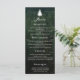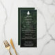 Carta rústica a la carta de boda con escenas de la selva de Destei y una sencilla silueta de abetos en la parte superior para un toque de bosque. El elegante título del guión dice "Menú" con cuatro secciones debajo, ideal para listar aperitivos, platos principales, postres y bebidas. El reverso ofrece un fondo verde con la silueta de árbol de abeto correspondiente y un área de texto personalizable para los nombres de la pareja y la fecha de boda. Una elección perfecta para recepciones de bodas al aire libre, forestales, de senderismo o inspiradas en la naturaleza.