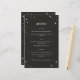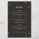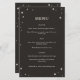 Este menú boda celeste forma parte de una colección inspirada en las tarjetas tarot. Este diseño presenta un borde con estrellas ilustradas en una paleta de color negro y crema. Esto sería perfecto para un boda de temática celeste o para cualquiera que quiera un estilo espeluznante o brujo para su menú boda.
