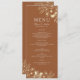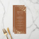 Sencillo y moderno menú boda de terracota botánica y floral con elegantes encajes de flores silvestres doradas y escritura simple con letras a mano.
