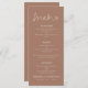 Menú Boda de texto en blanco y marrón suave imprimible. Disponible digitalmente e impreso. Una tipografía de conjunto informal en negro para el título principal Menú que complementa el resto del texto que puede personalizar fácilmente,