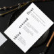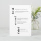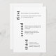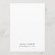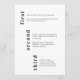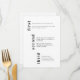 Menú Boda de texto vertical blanco y negro único con los nombres de los cónyuges y la fecha boda en la parte posterior. Todos los campos de texto y colores son personalizables en la herramienta de diseño.