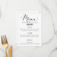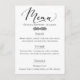 Tarjeta de menú boda de tipografía rústica con escritura a mano y acentos decorativos.