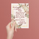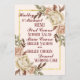 Regrese a la elegancia de los años 90 con esta bella peonía de oro, rosa y color crema de agua que rodea un texto marrón profundo que invita a sus invitados a su boda.