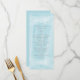 Tarjeta de menú Boda Watercolour Deco clásica y elegante con un moderno diseño Art Déco de rayas cruzadas en blanco y un sutil fondo de color azul. Este menú sencillo y de moda se puede personalizar fácilmente con los detalles de la recepción de bodas. Para obtener más opciones de personalización, haga clic en Personalizar.