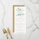 Complementa su clásico evento boda con este menú boda de eucaliptos verde dorado. El diseño presenta elegantes hojas de eucaliptos de color verde acuático y oro.
