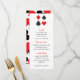 Perfecto para un clásico boda de casino de Las Vegas, rojo, negro y blanco, estos menús se pueden adaptar completamente a su evento. ¡No olvides pedir lo suficiente para cada lugar!