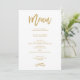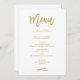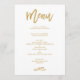 Menú Boda dorado con letra manual de moda