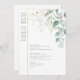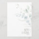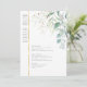 Delicados arreglos de vegetación inspirados en la naturaleza, incluyendo eucaliptos de goma azul con salpicaduras de dorado y de hojas de oro junto con diseños únicos, hacen de este hotel un emocionante boda para cualquier época del año. En el menú de la recepción de bodas que se muestra en el mostrador de arriba, hay un frondoso borde follárico y una disposición suave y anticuada en la parte trasera. Agregue las selecciones de menú, los nombres y la fecha de boda utilizando la plantilla proporcionada. Vea el vínculo de colección en esta página para ver todos los elementos coincidentes de este hermoso diseño o busque ID817 para ver otras piezas y opciones de color para este conjunto.