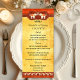 Romántico menú boda con dos elefantes de color marfil enamorados de sus tribus animándolos. El fondo es de textura en rojo burdeos y ocre cálido. Para todas las opciones, elija "personalizar". Hermoso para un boda de temática india o africana o un zoo o boda safari. También es ideal para una selección especial en un restaurante indio.