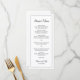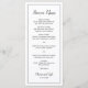 Menú de boda moderno en negro y blanco minimalista con el encabezado y sus nombres en una elegante escritura junto con su menú rodeado por un borde delgado. La parte posterior tiene su monograma en la parte inferior. Las fuentes y el borde pueden cambiarse a cualquier color que desee haciendo clic en el botón "personalizar". Estos menús de boda simples y minimalistas funcionan bien con cualquier estilo de boda.