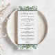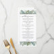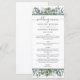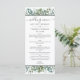 Las tarjetas de menú de boda de eucalipto elegante cuentan con texto personalizado elegante enmarcado por franjas negras y un diseño orgánico de vegetación de acuarela con follaje de eucalipto, hojas y ramas de eucalipto de dólar de plata en tonos suaves de menta, verde, oliva y verde azulado apagado. Perfecto para un evento de primavera o verano.