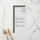 Aumente su experiencia de boda con este elegante menú nupcial, diseñado para complementar nuestra suite nupcial neutra. Con una sofisticada paleta de colores neutros y un delicado ilustracion artístico de una flor, la carta desprende elegancia y encanto intemporal. Personalizar el texto para reflejar tu selección culinaria única, proporcionando a tus huéspedes una deliciosa vista previa de las delicias culinarias por venir. Ideal para las parejas que buscan un diseño clásico y moderno, esta carta boda aporta un toque de refinamiento y sofisticación a los ambientes de la recepción.
