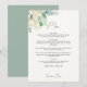 Menú de boda elegante y moderno con bouquet de flores de magnolia y eucalipto en acuarela y vegetación que encantará a tus invitados.