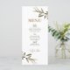 Eleva la recepción de bodas con este elegante menú Boda de oro y vegetación. Con un sofisticado diseño de exuberante vegetación y delicados acentos dorados, la carta aporta un toque refinado a la mesa. Perfecto para bodas de inspiración natural, minimalistas o formales, el diseño limpio y la tipografía elegante muestran sus platos cuidadosamente seleccionados con estilo. Personalizable completo, este menú boda se relaciona perfectamente con el tema boda, dejando una impresión duradera a sus huéspedes.