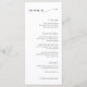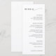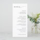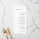 Menú de boda moderno que presenta un diseño simple y minimalista en blanco y negro con tipografía elegante junto con una fuente serif tradicional clásica. El diseño minimalista hace que este menú sea ideal para una boda formal.