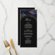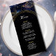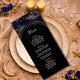 Eleva tu recepción bajo las estrellas con este menú de boda de astronomía celestial azul y dorado elegante. Diseñado con un rico fondo de cielo azul de medianoche y acentuado con constelaciones de oro negro radiante, este menú temático de estrellas aporta un toque cósmico refinado a tu decoración de mesa. Perfecto para parejas que se sienten atraídas por una estética romántica y de brujería, combina maravillosamente el encanto celestial con una sofisticación atemporal. Inspirado en la maravilla de la astrología y el misterio del universo, este diseño cósmico mejora tu decoración mientras guía a los invitados a través de tu cuidadosamente seleccionada experiencia gastronómica bajo un cielo azul de medianoche brillante.