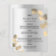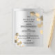 Personalice y agregue sus nombres, fecha y el menú boda. Fondo de aspecto metálico de color plateado falso, decorado con brotes de eucalipto dorado.