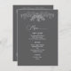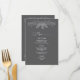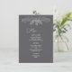 Admire un sentimiento de tranquilidad natural con esta invitación minimalista y moderna. El diseño, limpio y centrado, está adornado con un delicado dibujo de líneas blancas de hojas de eucalipto con un sencillo fondo gris que simboliza el amor y el crecimiento duraderos. Es un diseño elegante y equilibrado para parejas que aprecian detalles refinados inspirados en la naturaleza. Este menú boda forma parte de un conjunto completo.