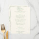 Un único menú retro de boda con un toque de color verde y moderno. Que presenta el diseño de plantillas de moda de fondo lechoso boho beige vintage y diseño de texto escrito a mano verde menta. Perfecto y a juego con la suite.
