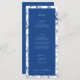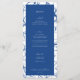 Elegante jardín vintage florido en azul francés, carta y carta de agradecimiento. Características, tipografía azul y blanca con menú al frente y mensaje de agradecimiento al fondo.