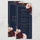 Menú Boda floral azul marino rubor borgoña oscuro y som