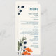 Completa su decoración de mesa boda con este elegante menú de Boda de Subdivisión Verde Azul Floral Naranja Botánico de agua. Con un bonito diseño acuático de flores naranjas florecientes, ramas verdes y follaje azul, la carta aporta un toque de sofisticación a la recepción. Los detalles del personalizable le permiten adaptar el menú a su evento específico, asegurándose de que coincida perfectamente con su tema y estilo. Solicite hoy mismo su Boda Floral Blue Green Branch, Naranja de productos botánicos de color acuarela, y añada el toque final a su decoración de bienvenida de bodas.