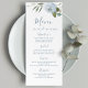 Romántica acuarela floral en polvorientas cartas azules y verde sabio, elegantes y románticas, excelentes cartas de menú boda para boda moderno, boda romántico y bodas botánicas en primavera y verano. Vea todas las piezas coincidentes de la colección.
