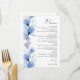 Estos modernos menús bodas florales transparentes de color azul se pueden personalizar con su información en tipografía moderna. Diseñado por Thisisnotme©