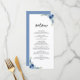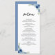 La preciosa carta del Boda floral azul Dusty le da un toque de elegancia y refinamiento a las mesas de recepción, mientras que le ofrece a sus huéspedes una experiencia gastronómica inolvidable. Con suaves y polvorientos diseños florales azules y un diseño depurado y sofisticado, la carta es perfecta para bodas románticos, de estilo jardín o primaveral. En él se exhiben con gusto los platos cuidadosamente seleccionados y se combina a la perfección con la decoración boda. Personalizable completo en Zazzle, usted puede personalizar fácilmente el menú con sus platos y detalles especiales, creando una presentación pulida e inolvidable que los huéspedes apreciarán verdaderamente.