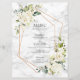 Menú Boda Floral blanca de mármol geométrico de cobre