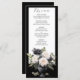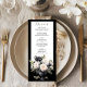 Eleva tu recepción nupcial con nuestro elegante menú Boda floral blanco y negro. Este menú de excelente factura presenta intrincados diseños florales negros con un fondo blanco y nítido, creando un estilo atemporal y sofisticado que realza cualquier configuración de mesa. Características principales: Diseño floral refinado: los delicados acentos florales negros aportan un toque elegante y artístico a cada carta, añadiendo sofisticación a su decoración boda. Calidad premium: Imprimido sobre un material de alta calidad, este menú tiene un ambiente lujoso y duradero, asegurándose de que se mantenga bien en toda la recepción. Disposición clara del menú: Organizado con claridad, el menú ofrece un amplio espacio para la comida del día de bodas, desde aperitivos hasta postres, lo que permite a los huéspedes disfrutar de una experiencia gastronómica sin fisuras. Opciones de personalizable: Personalice el menú con su elección de cursos, fecha de boda y cualquier otro toque especial. Nuestras plantillas fáciles de usar le permiten diseñar un menú que complemente su estilo único. Tamaño perfecto para la configuración de la mesa: con una superficie de 4 x 9 pulgadas, este menú es ideal para colocar en la mesa de cada cliente, lo que lo convierte en una parte agradable de la decoración de la recepción. ¿Por Qué Elegir Este Menú Boda? Nuestro elegante menú Boda floral blanco y negro es perfecto para las parejas que buscan un ambiente refinado y coherente para su recepción nupcial. Diseño floral de moda y disposición de los personalizables, la carta da un toque de elegancia a los comensales. Añade un toque de sofisticación a la recepción de tu boda con este hermoso menú floral. ¡Pide el tuyo hoy y completa el aspecto de tu día especial!