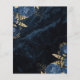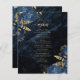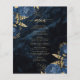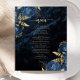 Este elegante menú nupcial se caracteriza por sus ramos florales de color azul marino y su vegetación dorada en dos esquinas, sobre una imagen de fondo de un ágata color azul marino. El texto del personalizable combina fuentes seriif de color dorado y letra manuscrita. El reverso presenta un diseño floral y agate a juego con el azul marino y el oro.