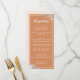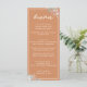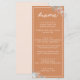 Un menú boda de estilo boho marrón, con letras modernas y guijarros, y hermosas flores acuáticas en las esquinas. Personalizar con todos los elementos del menú boda.