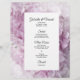 Personalizar el bonito Soft Pink Hydrangea Boda Menu con los detalles de la comida que se sirven en la ducha nupcial, la fiesta de compromiso, la recepción nupcial o el brunch añadiendo la ensalada o primer curso, entrante o segundo y postre o tercer curso. Personalízalo con los nombres de la novia y el novio, el lugar de celebración y la fecha de la ceremonia de matrimonio. Este elegante menú boda personalizado florido presenta una fotografía botánica realzada digitalmente de una flor de horangea rosa.