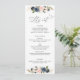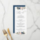 tarjeta de menú moderna color agua azul marino y floral con boda