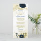 Menú Boda floral de oro de marfil azul marino