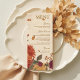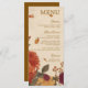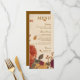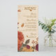 Elegante menú rústico de boda boho con flores de caléndula, crisantemo y otoño floral de dahlia con un borde vintage. Naranja cálido, burdeos, tonos dorados y hojas de otoño se combinan con el beige para un diseño de acuarela botánica. Estilo bohemio romántico perfecto para recepciones de primavera, verano o otoño con acentos de terracota y naranja quemado.