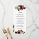 Muy romántico y perfecto para las recepciones de otoño, verano o bodas de invierno, el diseño de la carta se caracteriza por sus colores románticos de rojo borgoña, rosa rosa rubéro, naranja ruso y vegetación etérea en un bonito borde floral a lo largo de los bordes superior e inferior del diseño. En la parte trasera de la carta se encuentran los ramos florales que decoran las esquinas opuestas de la carta. Personalice la plantilla de texto con las selecciones de menú. Hay otros productos bodas que coinciden disponibles para coordinar con este elemento.