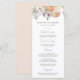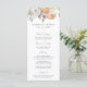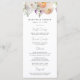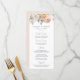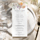 Menú de boda floral elegante con un ramo de flores y follaje en acuarela en tonos de melocotón, marfil, naranja, rosa pálido, púrpura, amarillo y verde. Personalice los menús de boda floral de primavera con sus nombres, fecha de boda y detalles del menú. El impresionante menú de boda floral es perfecto para bodas de jardín en primavera y verano.
