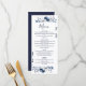 Este menú de boda floral blanco y azul marino elegante se puede personalizar con su información en tipografía moderna. Diseñado por Thisisnotme©