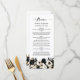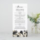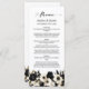 Un elegante menú boda floral en blanco y negro.