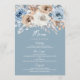 Menú Boda floral floral moderna azul y blanco