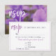 Menú Boda Floral de flores moradas Tarjeta rsvp de elección. Tarjeta rsvp casera con menú para bodas. La floral primavera morada o la carta boda de verano, con una foto de flores moradas y escritura blanca moderna. Esta tarjeta de respuesta boda le pregunta a sus clientes qué comida les gustaría en la recepción y el número de menús. Puede cambiar los detalles de la tarjeta para que se ajusten a sus necesidades. Ideal para una boda rústica, floral y campestre.