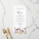 Menú plano con boda floral de flores silvestres moradas. Es fácil cambiar el texto.