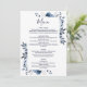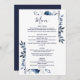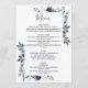 Este elegante menú boda floral azul marino y blanco puede personalizarse con su información en la tipografía moderna. Diseñado por Thisisnotme©